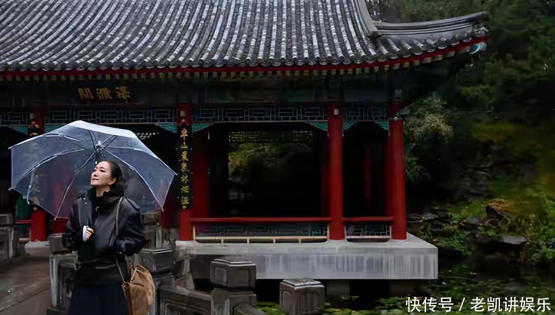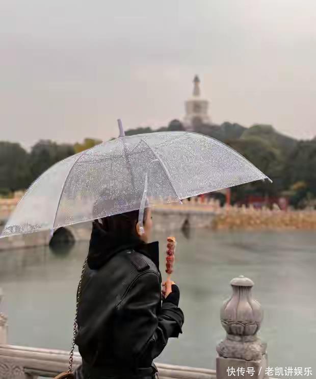 雨天的北海公园,因巩俐的出现多了帧电影画面。她撑着伞走过青石板桥,黑色皮衣沾着细碎雨珠,墨镜后的笑容藏不住,脚步慢悠悠,和寻常游客没两样,搜狐娱乐镜头里,她站在湖边与白塔同框,风掀起衣角,恍惚间像文艺片里的女主角。